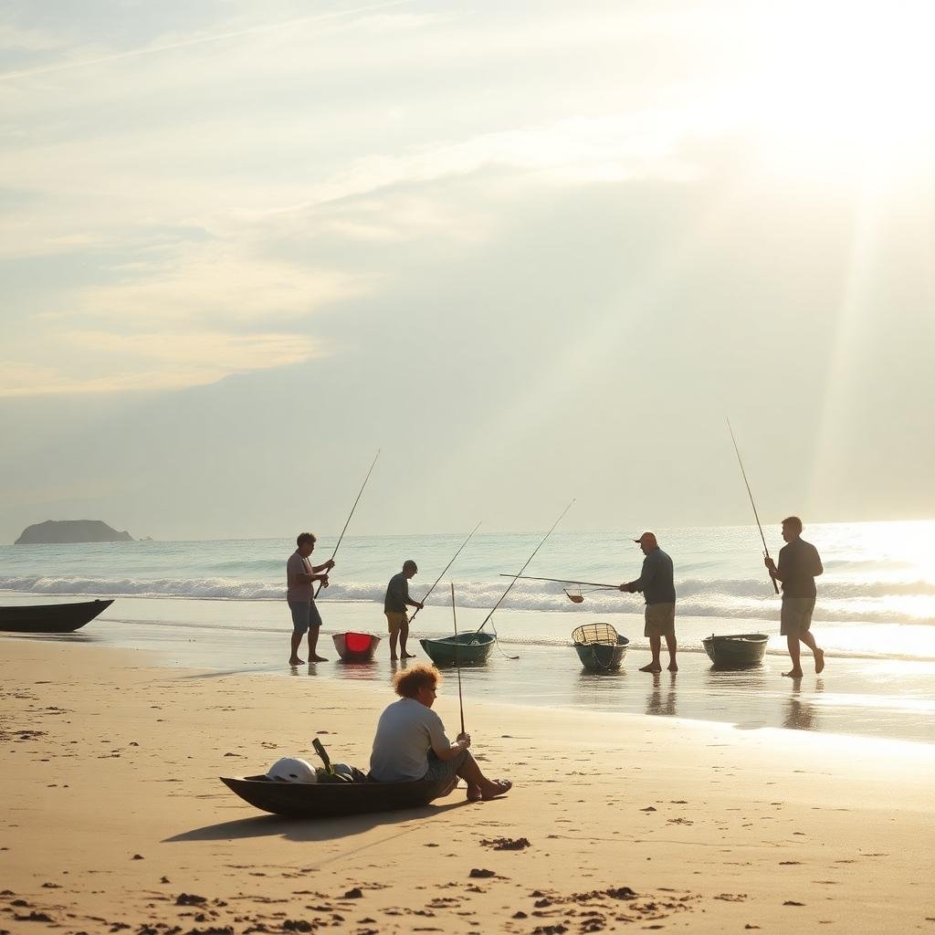 Sarah watches over her children as they play statues on the beach. A simple game to ensure they leave their father alone to fish.